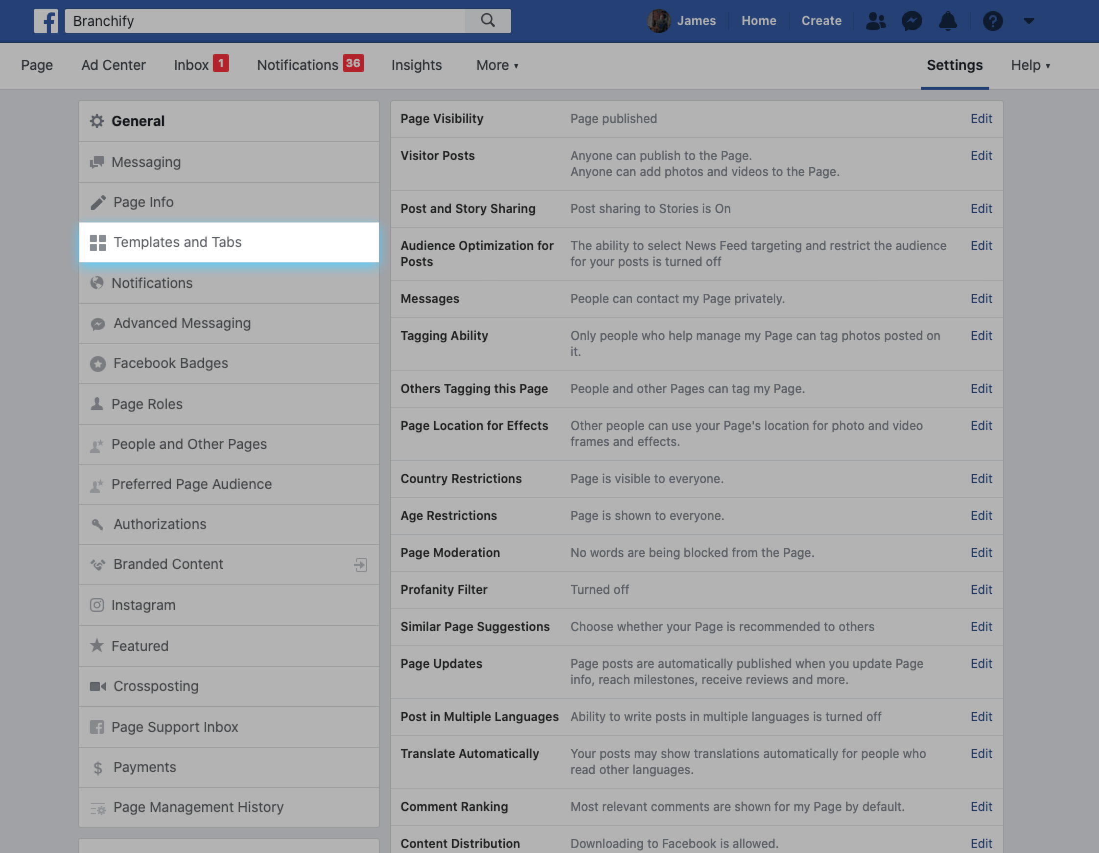 2. Click “Templates and Tabs”