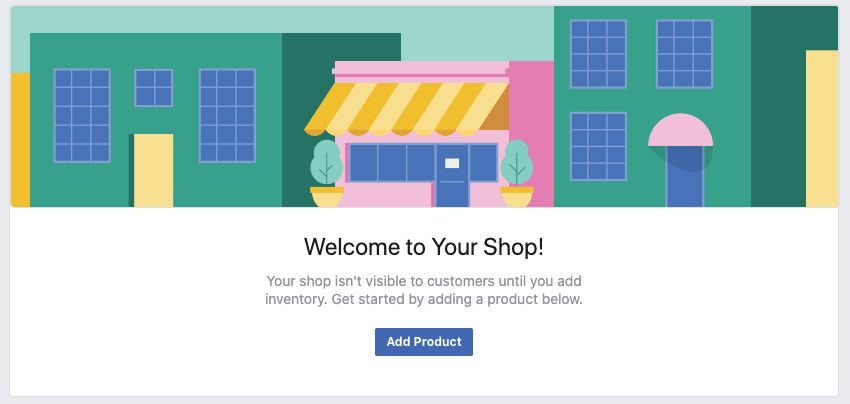 7. Your Facebook shop is ready! To start displaying your products, click on the “Shop” tab again and click “Add Product”