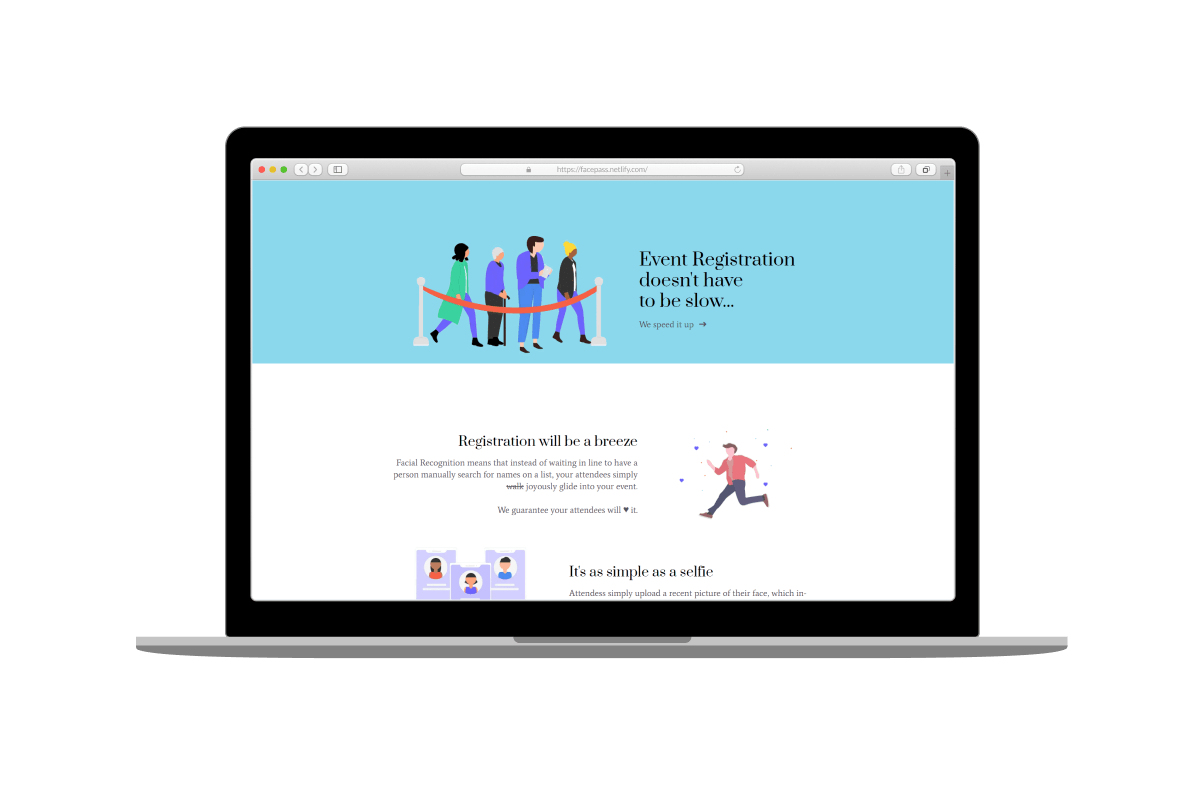 With the FacePass webapp, attendees simply have to upload a recent picture of their face to pre-register to an event, which in-turn adds to their user profile, and the platform will recognize the participant instantly.